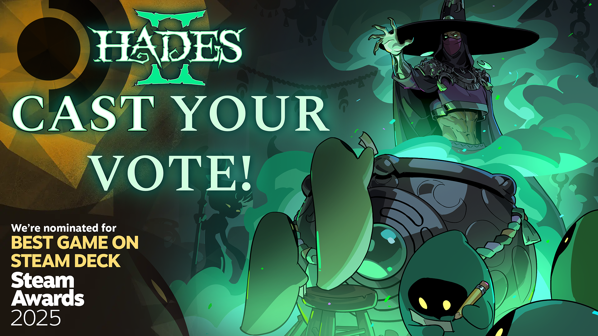 Hades II is the biggest game we've ever made, and the best-reviewed game of the year, as well as recipient of accolades such as Best Action Game at The Game Awards. It's also in the running for Best Game on Steam Deck in the Steam Awards, if you'd do us the honor of casting your vote! These Awards are a powerful way to show your support for your favorite games, and also gave us an excuse to bring you this likeness of Headmistress Hecate by our illustrator Jeremy Anninos!